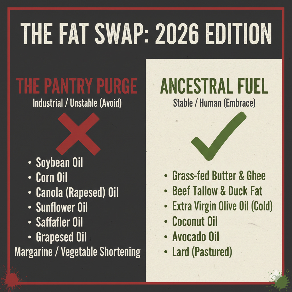 I’ve put together a 2026 Australian "Safe List" of specific supermarket brands (Coles, Woolies, and Harris Farm) that are 100% seed-oil free, plus a 2-Year Detox Protocol to drain the sludge from your system.